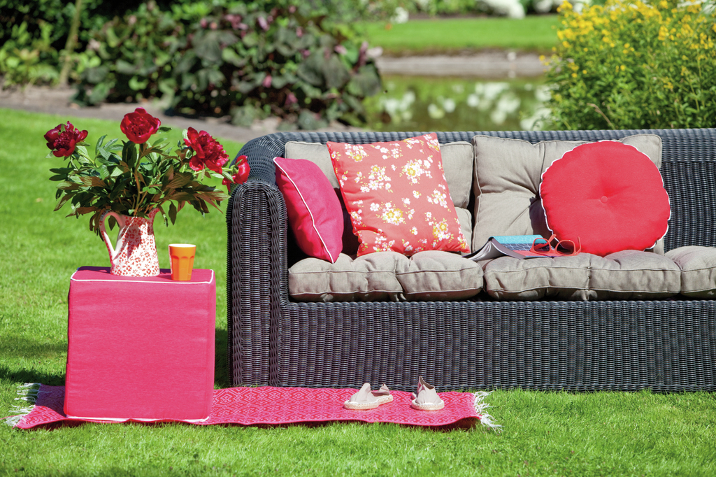 Auch Loungemöbel lassen sich mit verschiedenen Kuschelkissen immer wieder neu gestalten,